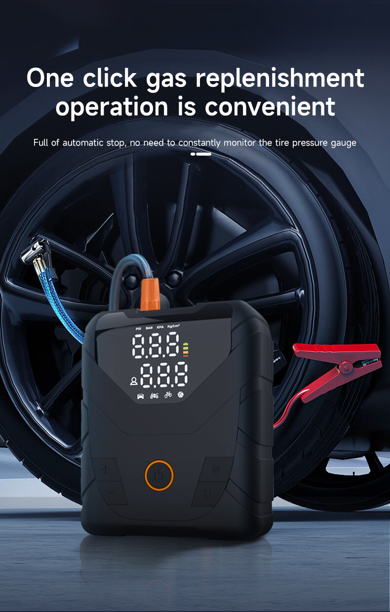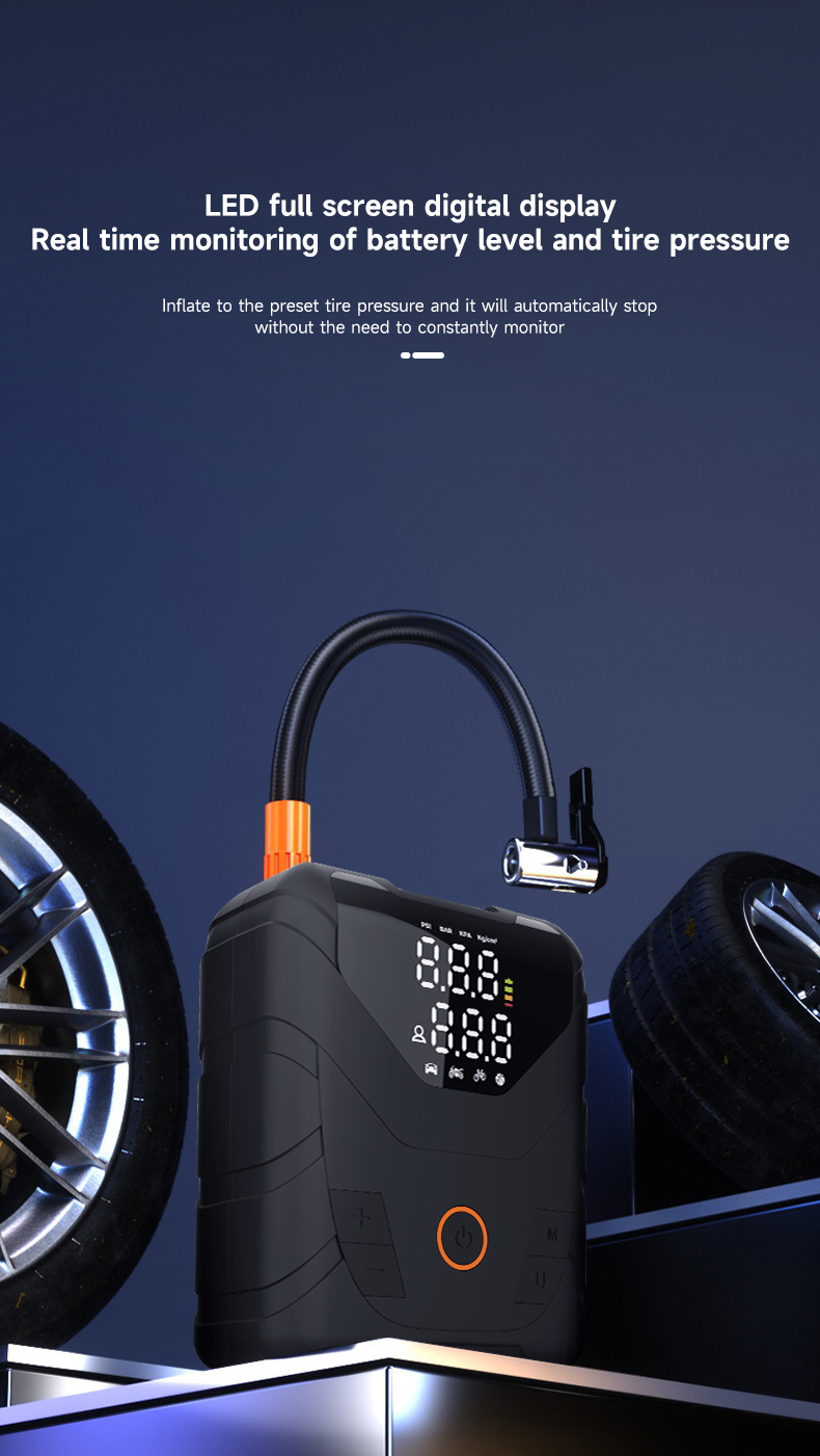The default settings are set for the inflation standards of bicycles, cars, basketballs, etc. They can also be adjusted manually. For example, the standard for cars is 2.5, while for new energy vehicles, it is often required to be 2.9. The operation is also very simple. Just switch the mode, increase or decrease with the few buttons, screw it onto the valve core of the tire, then set the tire pressure and press Start. Moreover, when it is screwed onto the tire, the tire pressure will be directly displayed.