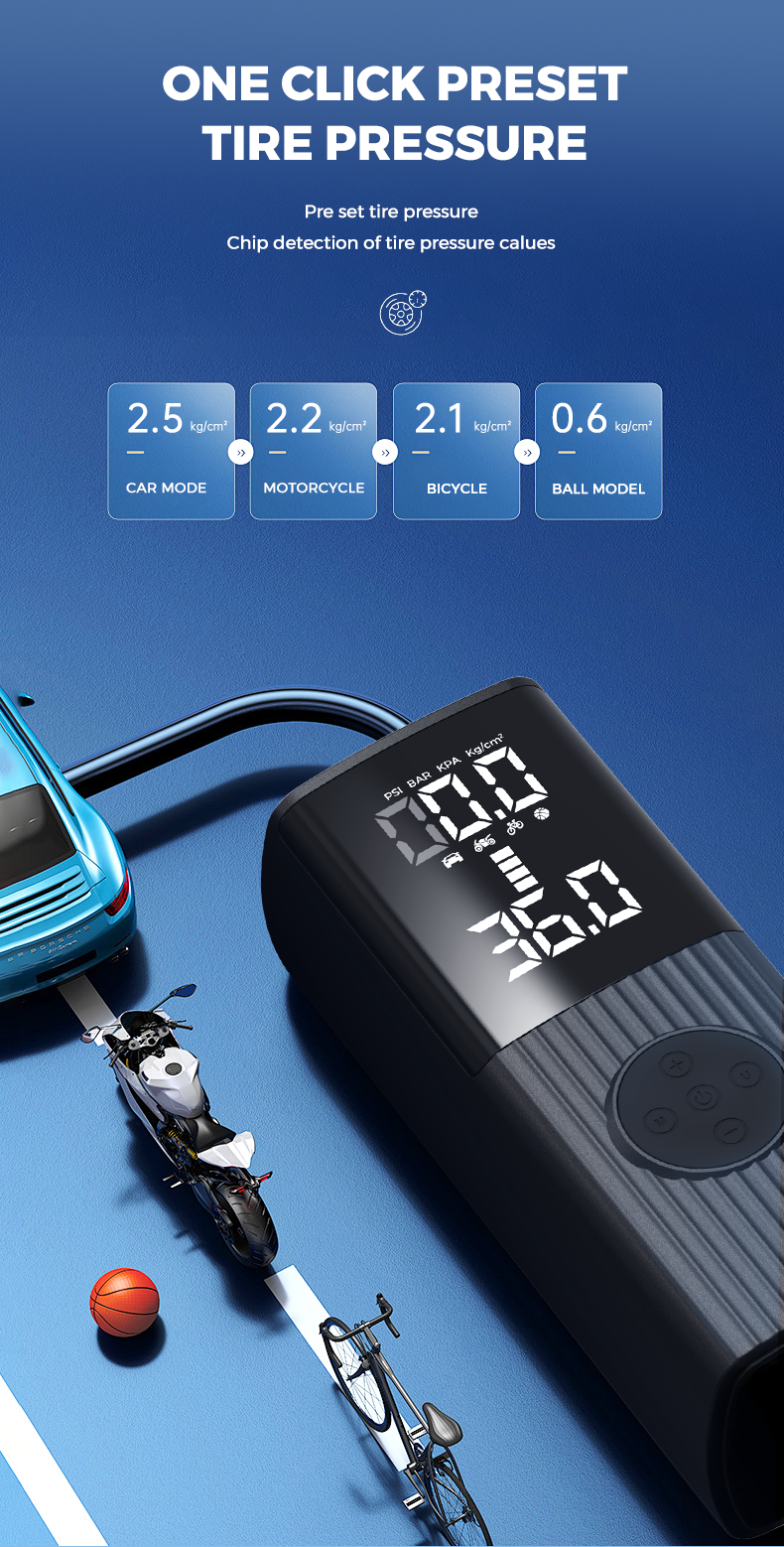 Equipped with an industry-leading 22-cylinder ultra-large cylinder design, the air compression efficiency is enhanced by 40% compared to ordinary pumps. It can complete tire pre-inflation within 30 seconds and restore the standard tire pressure within 1 minute. Whether it is the low rolling resistance wide tires of new energy vehicles or small tires such as those for motorcycles and bicycles, it can precisely and quickly replenish air, avoiding the risk of secondary blowout caused by insufficient tire pressure.